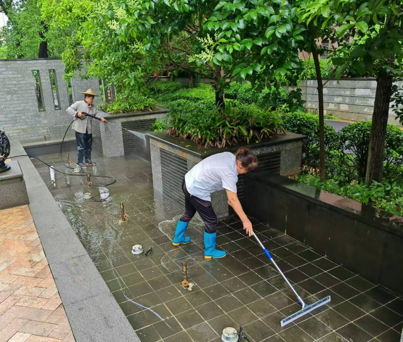 保潔與綠化團(tuán)隊(duì)用雙手扮靚家園。保潔組分工明確,主干道早晚清掃、設(shè)施每日兩次消毒擦拭、垃圾日產(chǎn)日清。綠化組依季養(yǎng)護(hù),春剪枝補(bǔ)綠、夏澆水防蟲、秋清葉護(hù)草、冬裹樹除草,讓小區(qū)四季整潔有景。